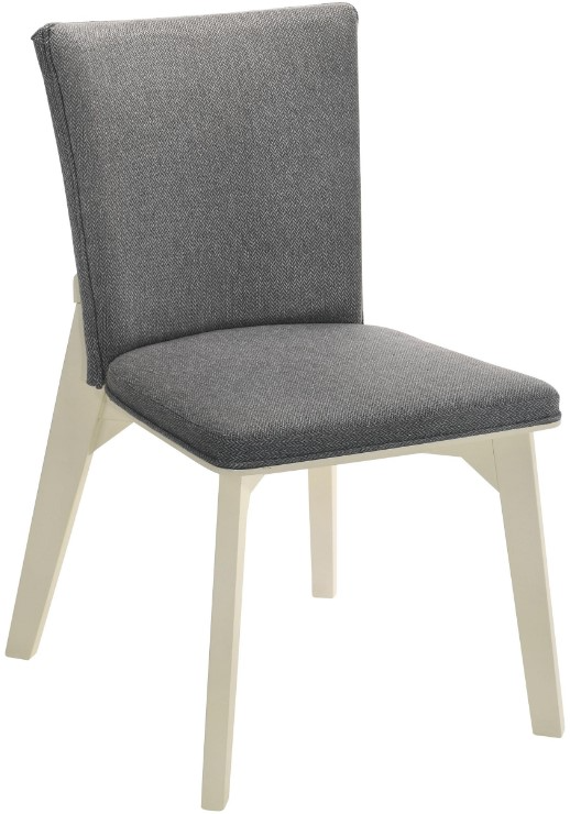 Enhance your dining area with the modern simplicity of this comfortable dining chair. The chair features soft gray fabric upholstery over plush cushioning for a comfortable seat. Its sleek, angular white base creates a subtle, airy contrast, while its streamlined design makes it a perfect match for contemporary spaces.Read More