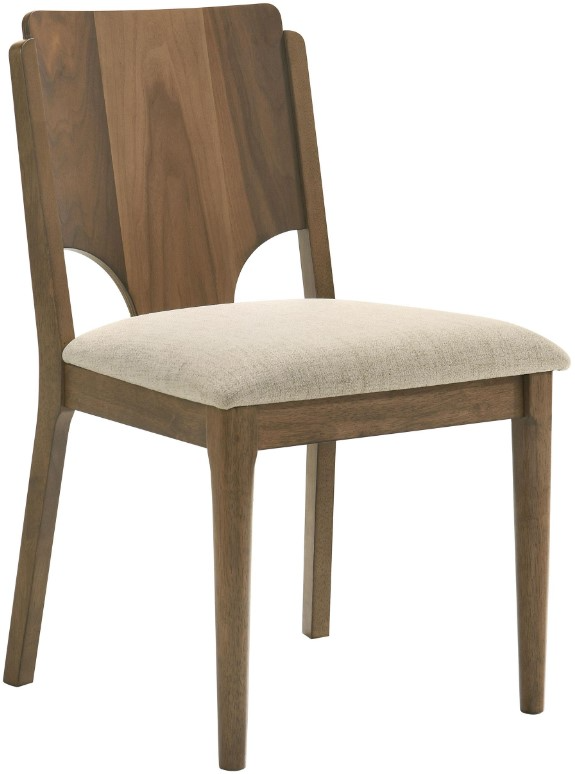 A walnut finish highlights the wood grain details of each chair and adds richness