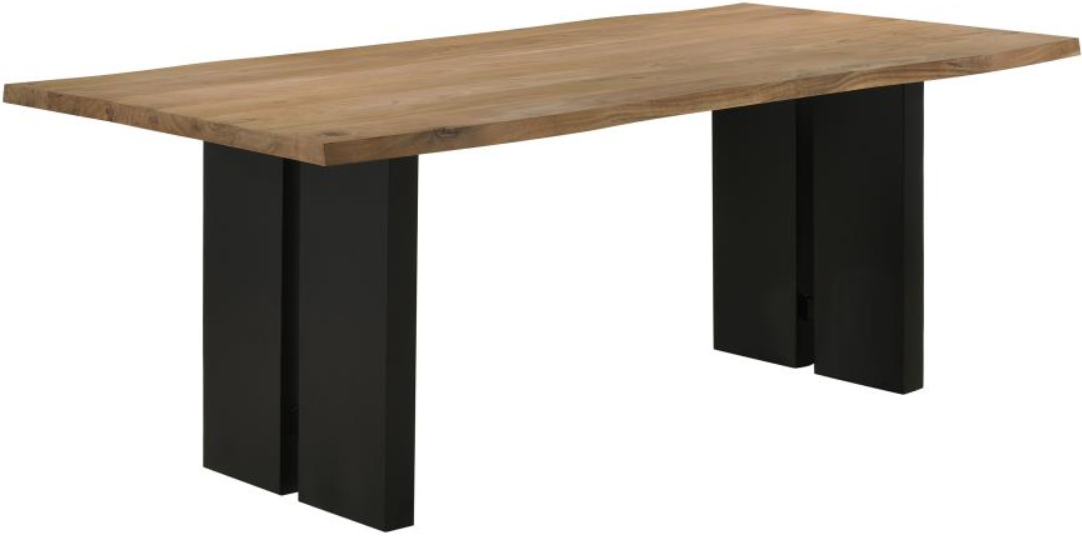 This dining table features a natural acacia wood top that highlights the beauty of the grain, paired with a bold black base for contrast. Its solid build and generous surface make it ideal for everyday meals or entertaining guests in style.Read More