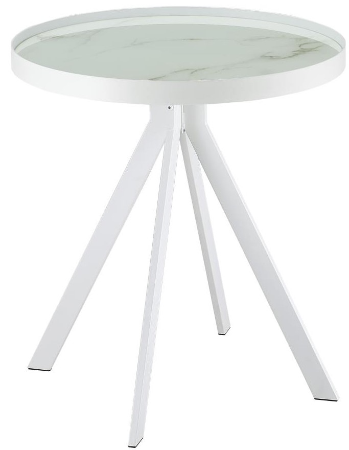 The Coaster® Briggs Marble Printed Glass Top End Table with White Base features a sophisticated marble print on the glass surface, paired with a sleek white base. This stylish table offers a modern, elegant touch to any room while providing a functional surface for your essentials.Read More