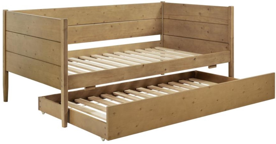 Transitional-style daybed with trundle enhanced by a warm natural brown finish for added charm