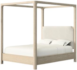 Airy and architectural, this canopy bed brings sculptural presence and soft romance to the bedroom. Gracefully arched posts frame a tall silhouette, while an upholstered headboard adds a tailored layer of texture and comfort. Designed with a platform panel base, it offers lasting support without the need for a foundation.Read More