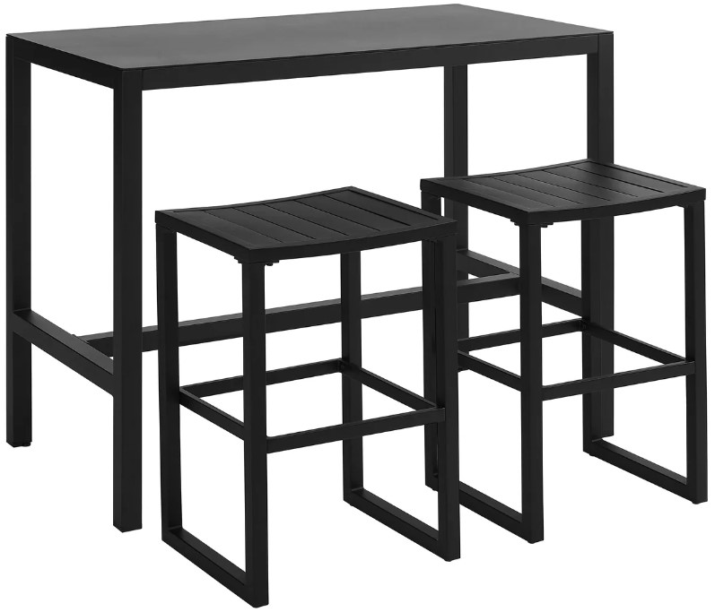 Enjoy al fresco meals in style with this minimalist 3-piece or 5-piece tavern set, crafted for elegance and durability. Featuring a sleek aluminum bar-height table and two matching stools, each piece boasts sturdy construction with clean, modern lines.Read More