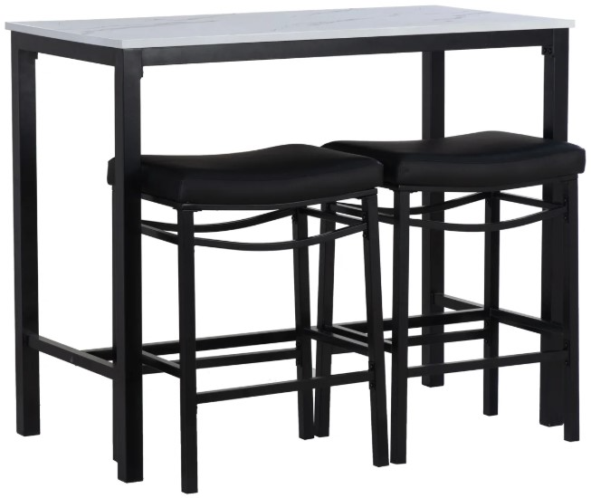 Transform your dining or entertainment area with this 3-piece faux leather set, featuring a sleek table and two comfortable stools that tuck neatly underneath. The 44" l x 22" d x 36" h table boasts an MDF table top wrapped in marble paper and finished with ash veneer for a modern look.Read More
