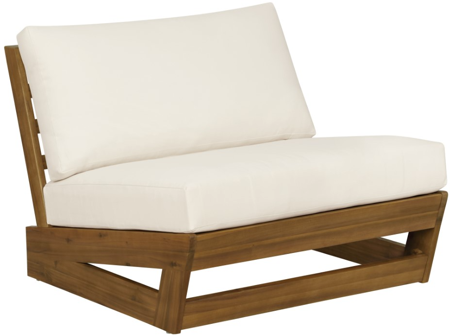 Sleek, sculptural, and designed for relaxation, this armless chair adds a modern edge to any open-air setting. Crafted from solid acacia wood with a warm teak-toned stain, the angular frame emphasizes clean lines while naturally standing up to the elements.Read More