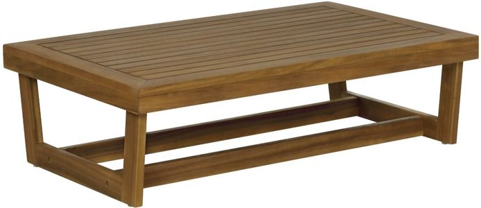 Built low and wide for casual gatherings, this outdoor cocktail table brings an understated architectural presence to patios and roof decks. Crafted from solid acacia wood with a warm teak-toned finish, its angular base and slatted tabletop naturally resist the elements while creating a sense of visual rhythm.Read More
