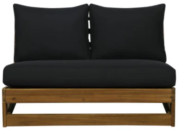 Generously scaled cushions soften the lines with a tailored feel, upholstered in durable black polyester fabric that stands up to the elements and invites you to sink in year-round. Float it solo on a patio or weave it into a modular arrangement—it’s a versatile foundation for relaxed, outdoor living.