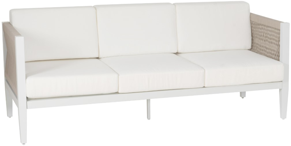 Breezy, modern, and tailored for everyday comfort, this outdoor sofa brings a fresh coastal sensibility to patios, pool decks, and garden lounges. Its white powder-coated aluminum frame provides a durable yet lightweight foundation, while handwoven taupe rope panels introduce soft texture and tonal depth.Read More