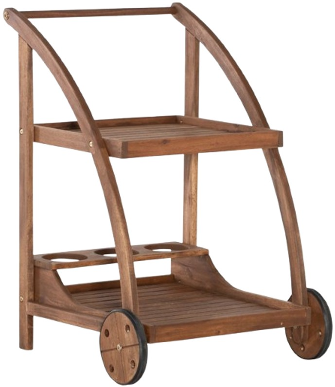 Serve up storybook charm and real-world functionality with this outdoor trolley. Crafted from durable acacia wood in a warm acorn finish, the sturdy construction features curved side rails, slatted shelves, and smooth-rolling wheels. The two-tiered design provides plenty of space for plates, ice buckets, and serving essentials.Read More