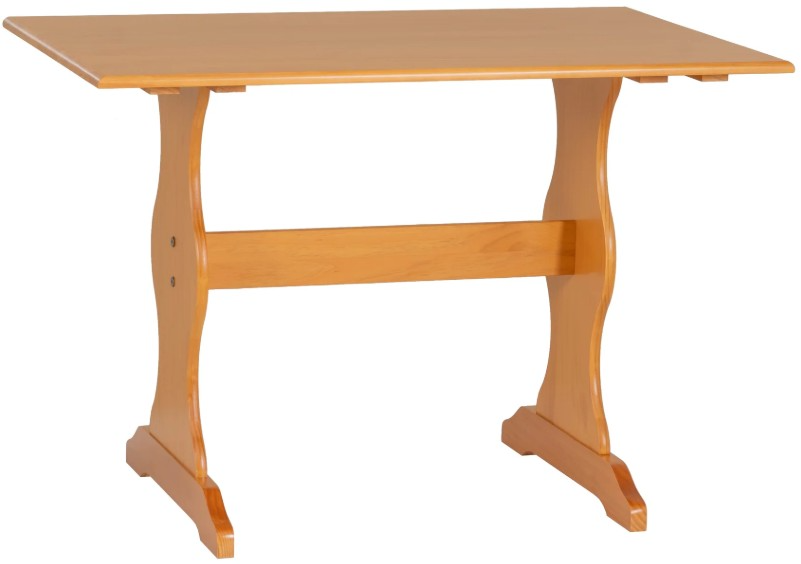 This nook table blends timeless farmhouse charm with clean, compact design—perfect for casual dining spaces of today. Constructed from solid pine and finished in rich walnut stain, it features gently scalloped legs and a classic trestle base that nods to traditional craftsmanship with an updated feel.Read More