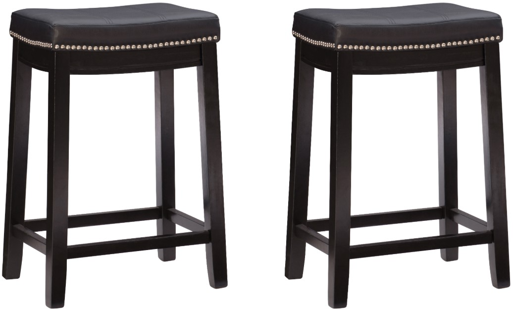 This pair of hardy counter stools is great for introducing a refined, timeless style to your kitchen. The solid wood frames are finished in a jet-black paint that is accompanied by black faux leather upholstery.Read More