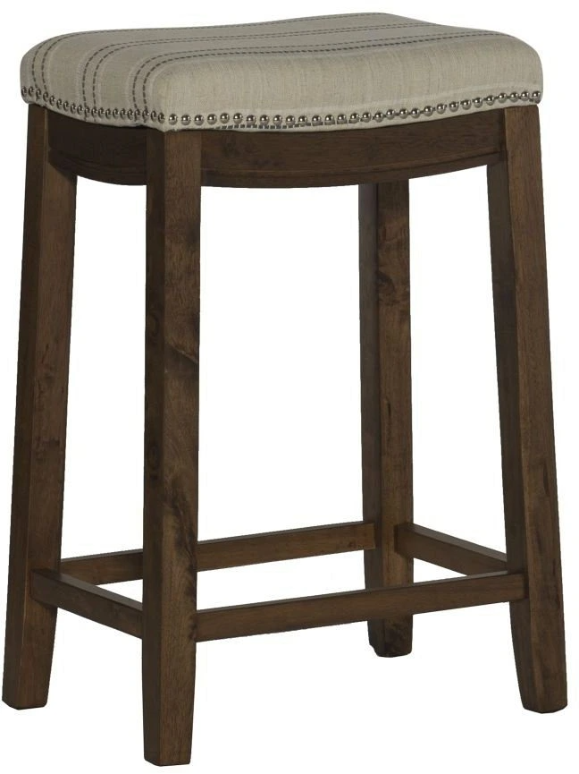 This natural linen topped counter stool will add stylish seating to any kitchen counter or high top table in your home. The sturdy wood frame has a rich brown finish accented by a natural color polyester linen blend fabric seat. Brushed silver nailhead trim adds an eye catching detail.Read More