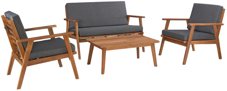 This tailored chat set is designed to be colorful, inviting and durable. Vibrant removable dark blue, grey, natural or orange cushions are made of performance fabric that resist fade and damage from the elements. The frame is built from acacia wood that is oil stained in a traditional walnut finish.Read More