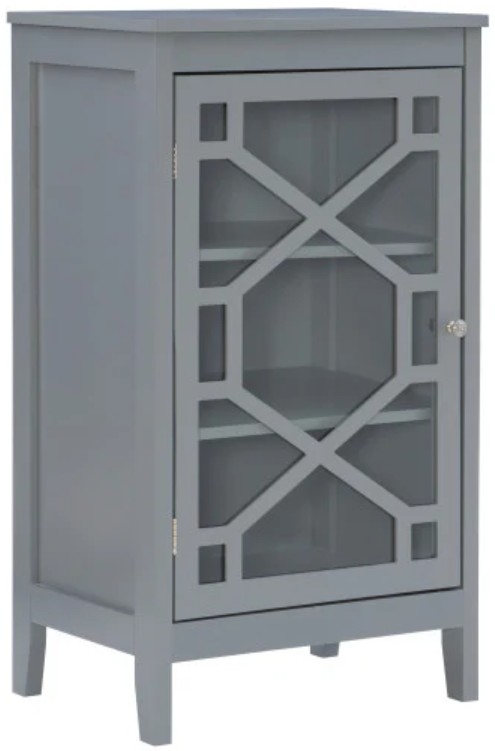 This small cabinet is a versatile accent piece, fit for any room in your home. The cabinet features a single designed glass door front that adds interest and appeal to the streamlined frame. Inside, three shelves provide ample storage space for all of your essentials.Read More