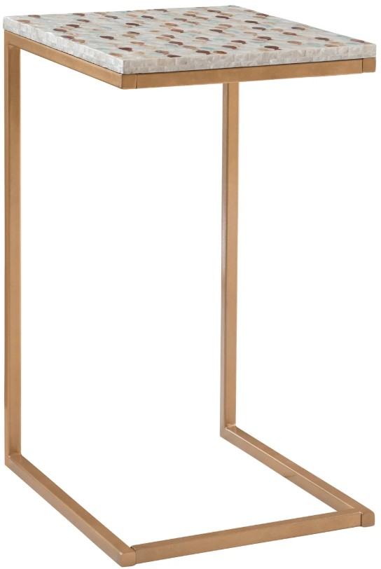 This modern accent table will add a hint of industrial yet coastal flare to any living or office space. Featuring a gold geometric frame and neutral capiz shell finish on the table top, this unique piece will serve as a beautiful accent in nearly any decor.Read More