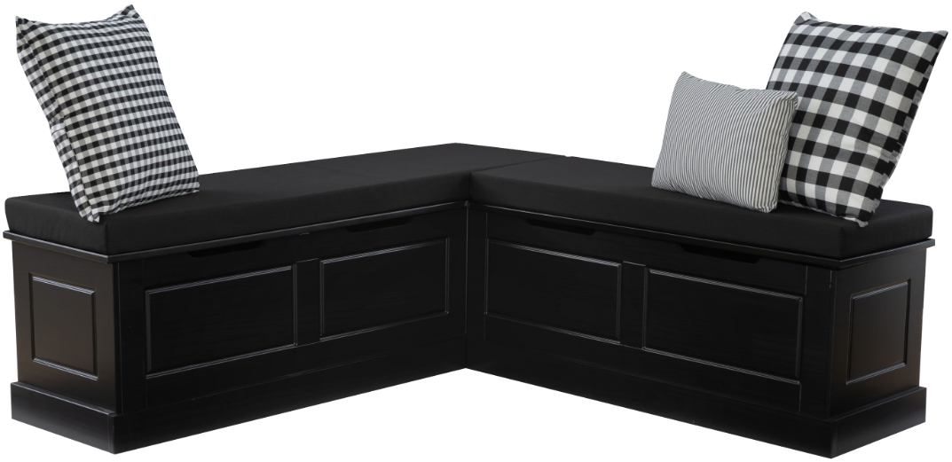 Welcome to comfort and style! Our backless nook, finished in sleek black lacquer, invites you to relax in sophistication. Paired with inviting black cushions, it offers a cozy retreat for any space. Enhancing its charm are two 20" x 20" pillows boasting coordinated checkered patterns for a touch of playfulness.Read More