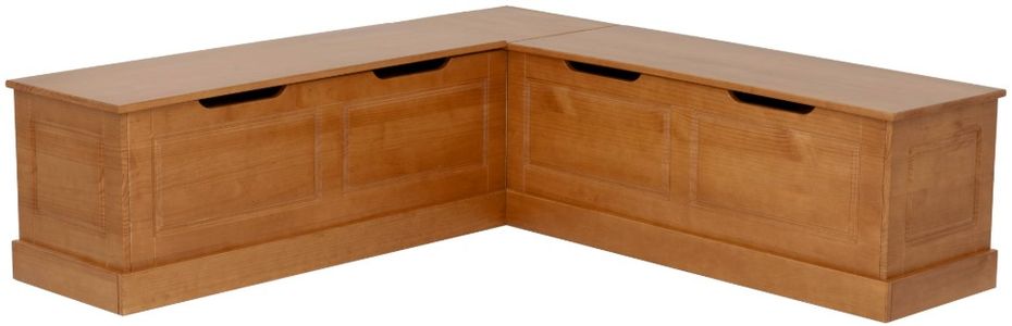 Add classic warmth and smart storage to your space with this backless corner nook bench in a rich caramel finish. Crafted from a blend of solid pine and MDF, this L-shaped bench features clean lines, finger-jointed panel detailing, and a UV varnish that enhances the natural wood grain while protecting against daily wear.Read More