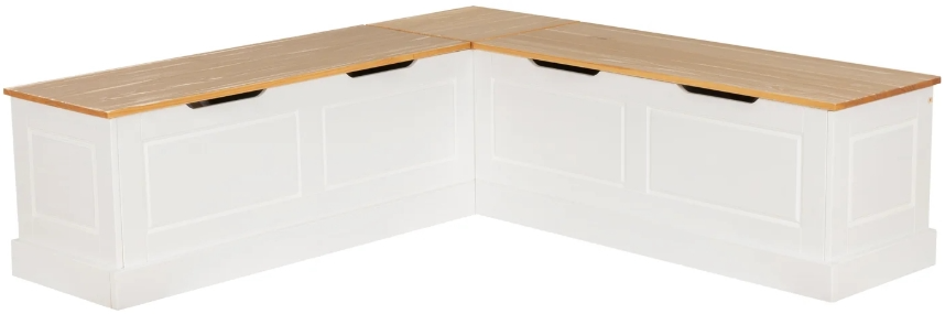 Hidden Storage Beneath Seats: Each bench top lifts open on soft-close hinges to reveal hidden compartments—perfect for storing table linens, cookbooks, or seasonal decor. Keeps your dining space clutter-free and cozy