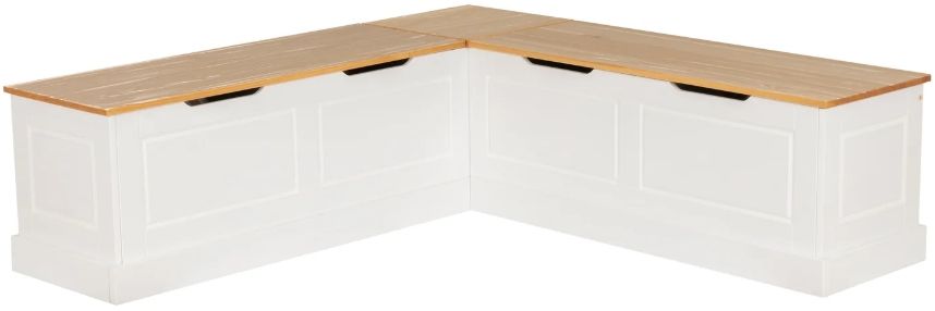 Solid Pine with Natural Stain: Crafted from solid pine with a warm natural stain, the bench tops showcase visible grain for a relaxed, organic feel. The white painted base adds a soft, cottage-inspired contrast