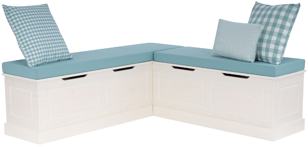 Step into comfort and style with our charming backless nook, boasting a fresh white finish for a timeless look. Paired with serene seafoam cushions, it offers a tranquil oasis for relaxation. Complementing this inviting ensemble are two 20" x 20" pillows adorned with coordinated checkered patterns, adding a touch of whimsy to your space.Read More