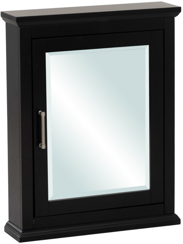 The tempered glass mirror adds a clean, contemporary touch while offering the perfect reflection, and the brushed chrome handle provides a polished accent for easy access. With ample storage space, this cabinet helps you keep your toiletries, medications, and essentials organized and within reach. Its black lacquer finish complements a variety of bathroom styles, making it a must-have addition to any modern space.