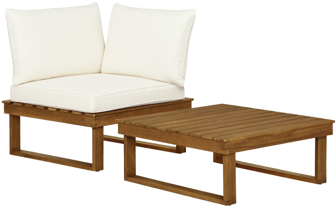 Corner Seat and Table Included: This 2-piece set includes a plush corner chair and matching slatted table. A ready-made pairing for relaxed, functional outdoor lounging
