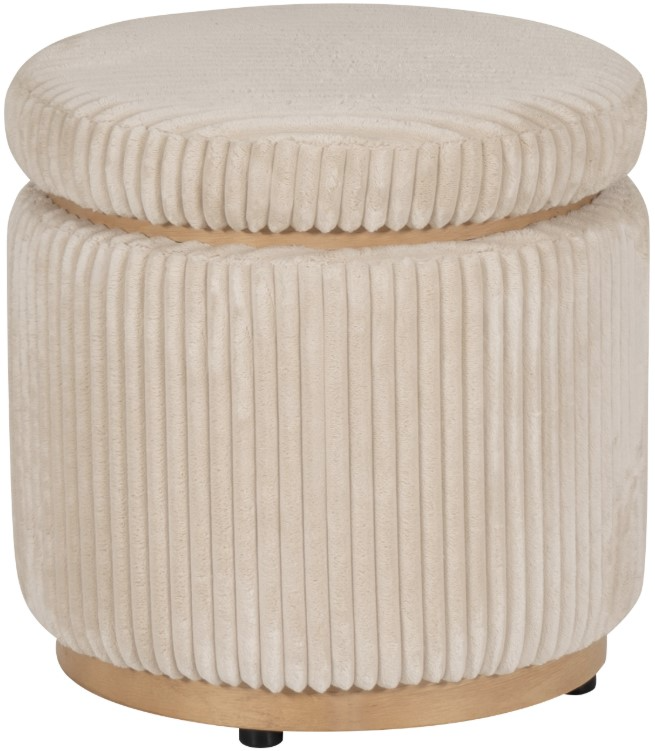 Add a touch of timeless elegance to your space with this cream round ottoman. Fully assembled for your convenience, this versatile piece offers more than just comfort—it's also a storage solution.Read More