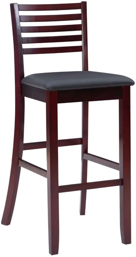 With a traditional ladder back styling this bar stool will enhance your dining area with its casual charm. Available in a rustic gray wash finish and beige fabric seat or merlot with dark gray faux leather, both give this bar stool a timeless allure.Read More