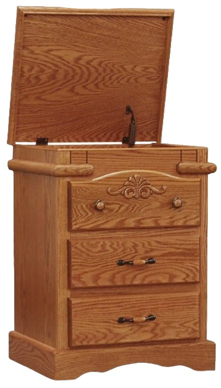The Vintage Brown 3-Drawer Nightstand with Flip Top combines classic charm with modern convenience. Featuring a rich brown finish, it offers three spacious drawers and a flip top for additional storage or surface space. This piece is perfect for adding functionality and vintage style to any bedroom.Read More